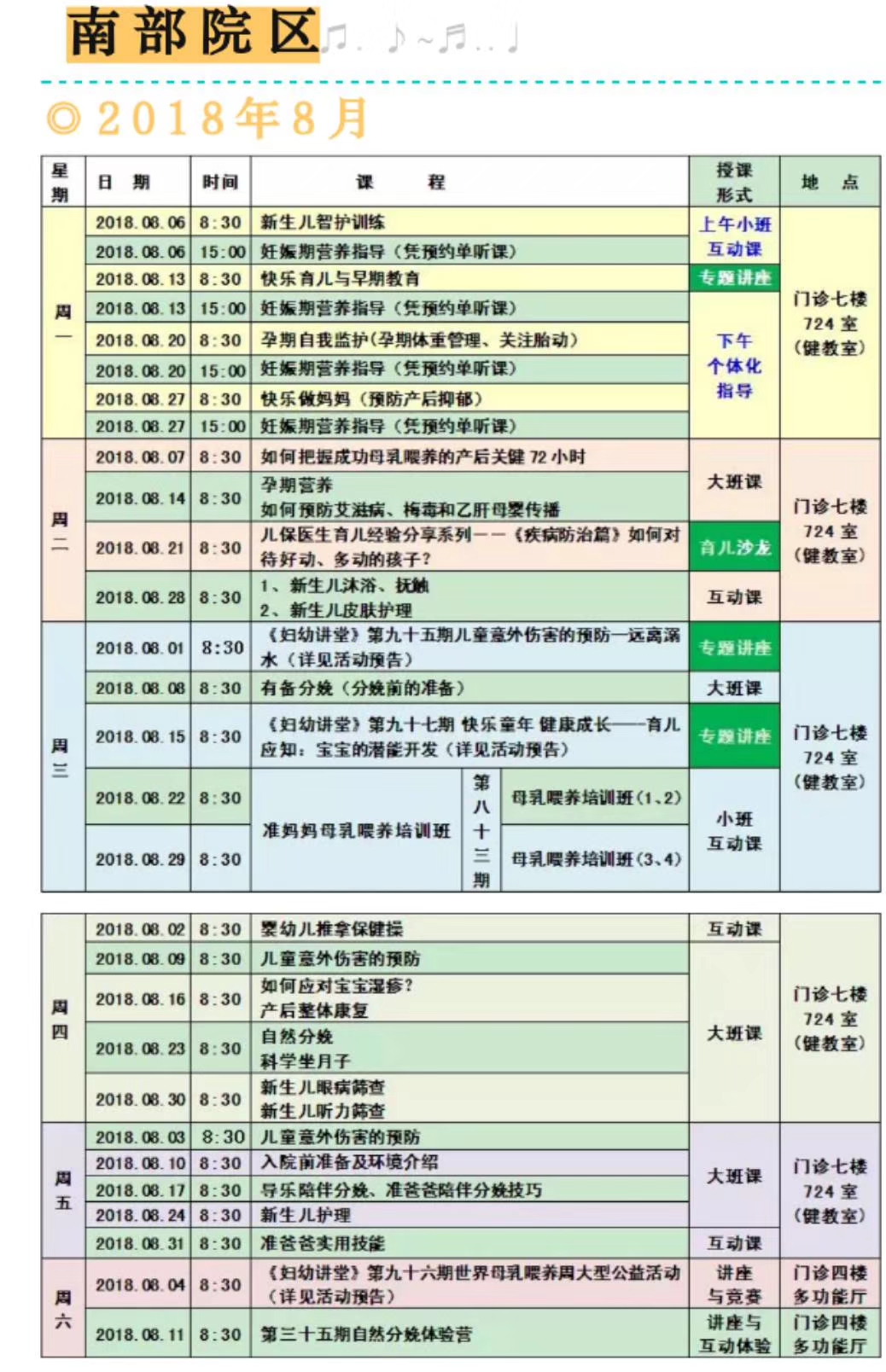 婦兒醫(yī)院南院8月份孕婦學(xué)校課程表