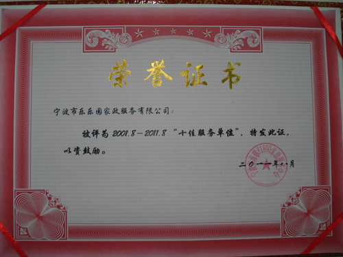 被評為81890家庭服務(wù)業(yè)協(xié)會(2001.8-2011.8)