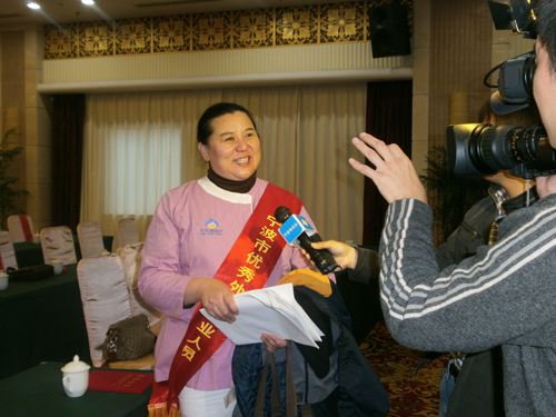 汪新風(fēng)被評(píng)為2012年度寧波市優(yōu)秀外來(lái)從業(yè)人員,接受記者采訪